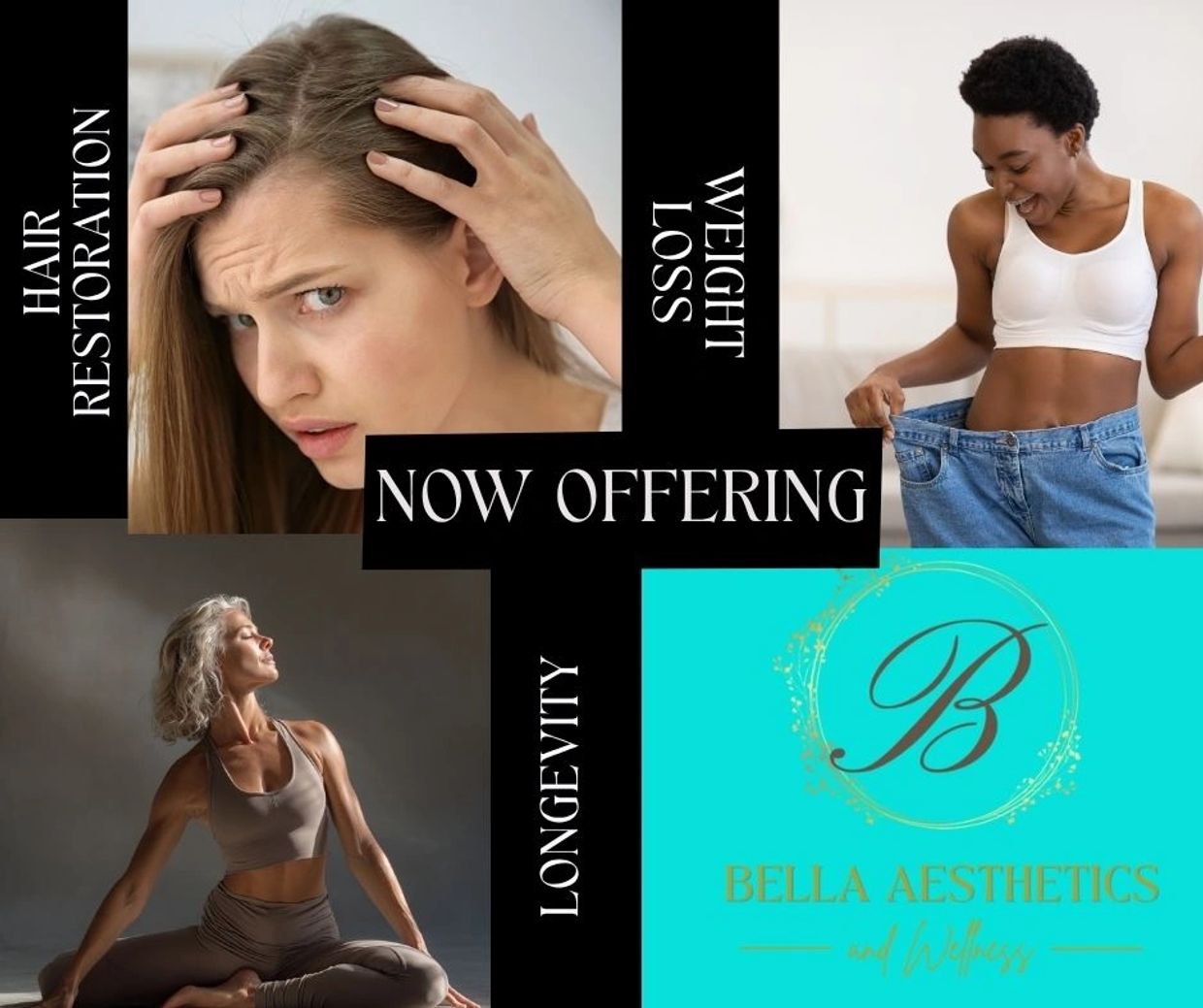 At Bella Aesthetics and Wellness, we’re expanding our wellness offerings to support your health from the inside out. These new services are now available with a quick and easy consultation—prescriptions shipped directly to your door!
