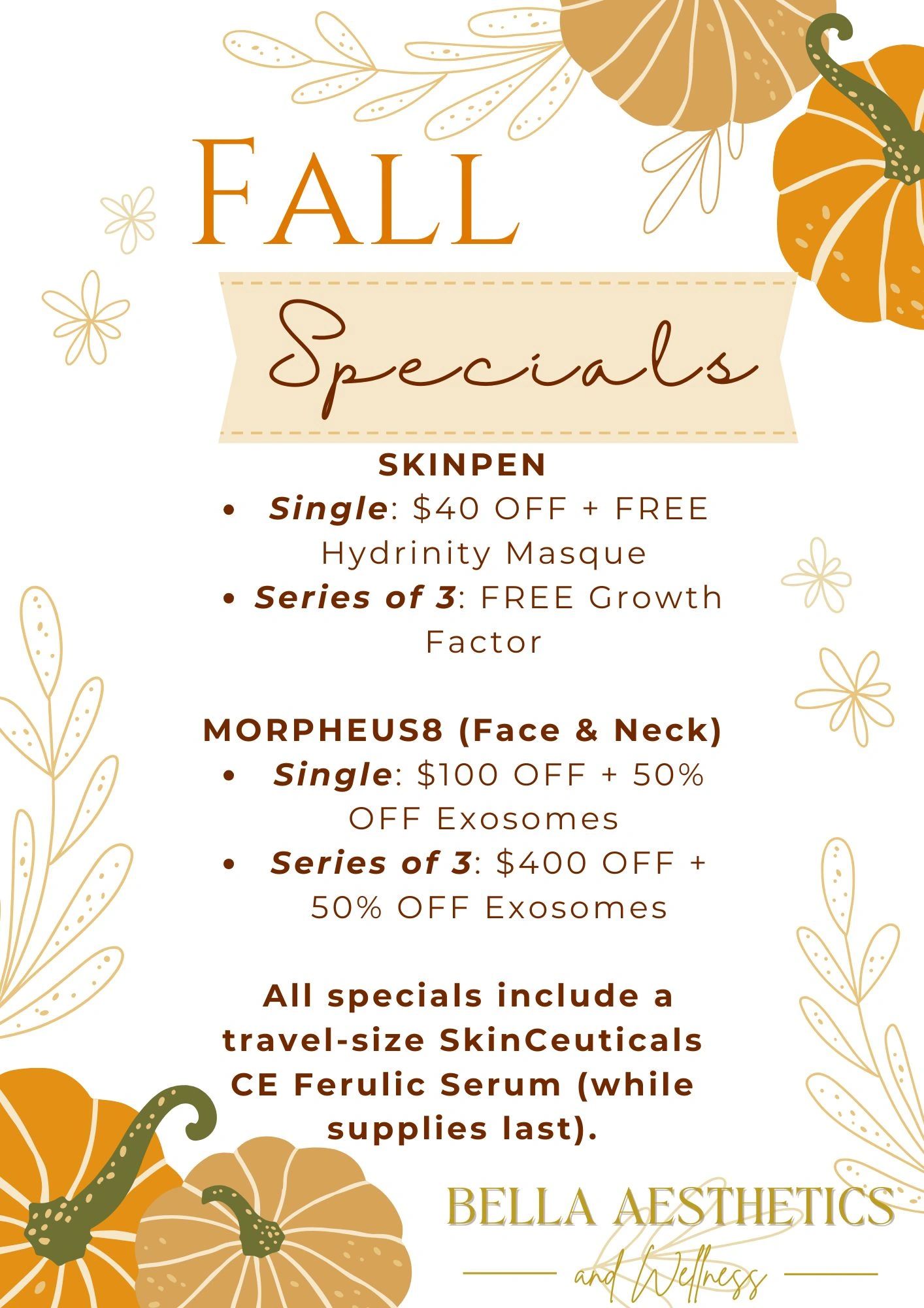 🍂 Fall is the perfect time to renew and refresh your skin. Whether you’re looking for gentle collagen stimulation with SkinPen Microneedling or advanced tightening and resurfacing with Morpheus8, these limited-time offers will leave your skin radiant for the holidays. 🍂